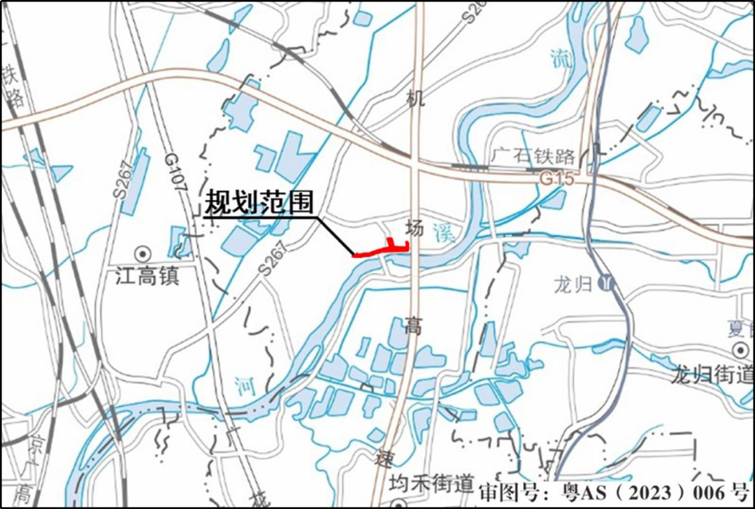 项目位于白云区人和镇流溪河右岸清河村、镇湖村河段,人和镇南部。本次规划在1.54公顷工程范围用地的基础上,结合道路红线和规划河涌划定规划范围2.79公顷。